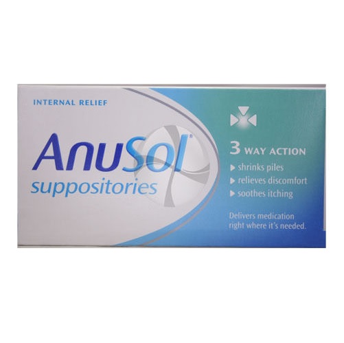 Anusol suppositories 3 way action 12.For the relief of internal haemorrhoids and other related ano-rectal conditions.