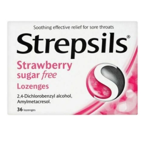 Strepsils Strawberry Sugar Free Lozenges contains two antiseptic ingrediants (2-4,Dichlorobenzyl alcohol and Amylmetacresol) for use in throat medications.These are used for symptomatic relief of mouth and throat infections.